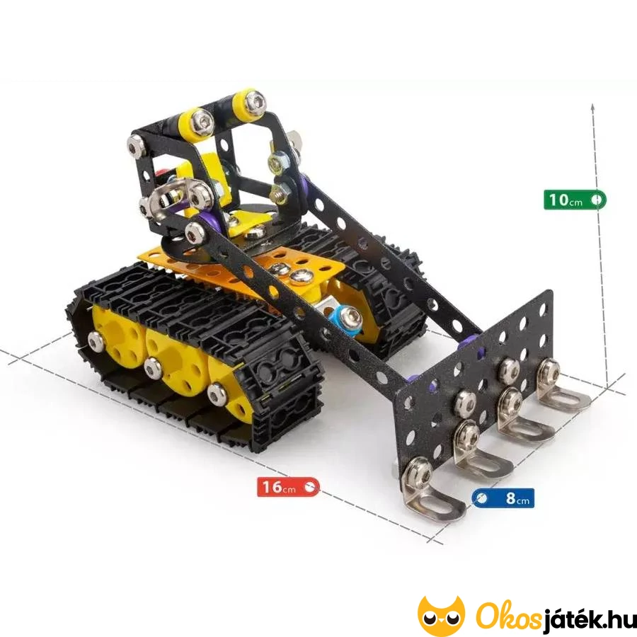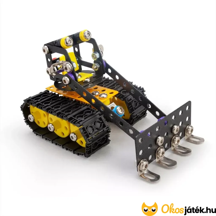 Fémből készült építőjáték, műanyag elemekkel kombinálva, melyből egy részletes buldózer építhető össze. A készletből akár saját építmények is létrehozhatók.