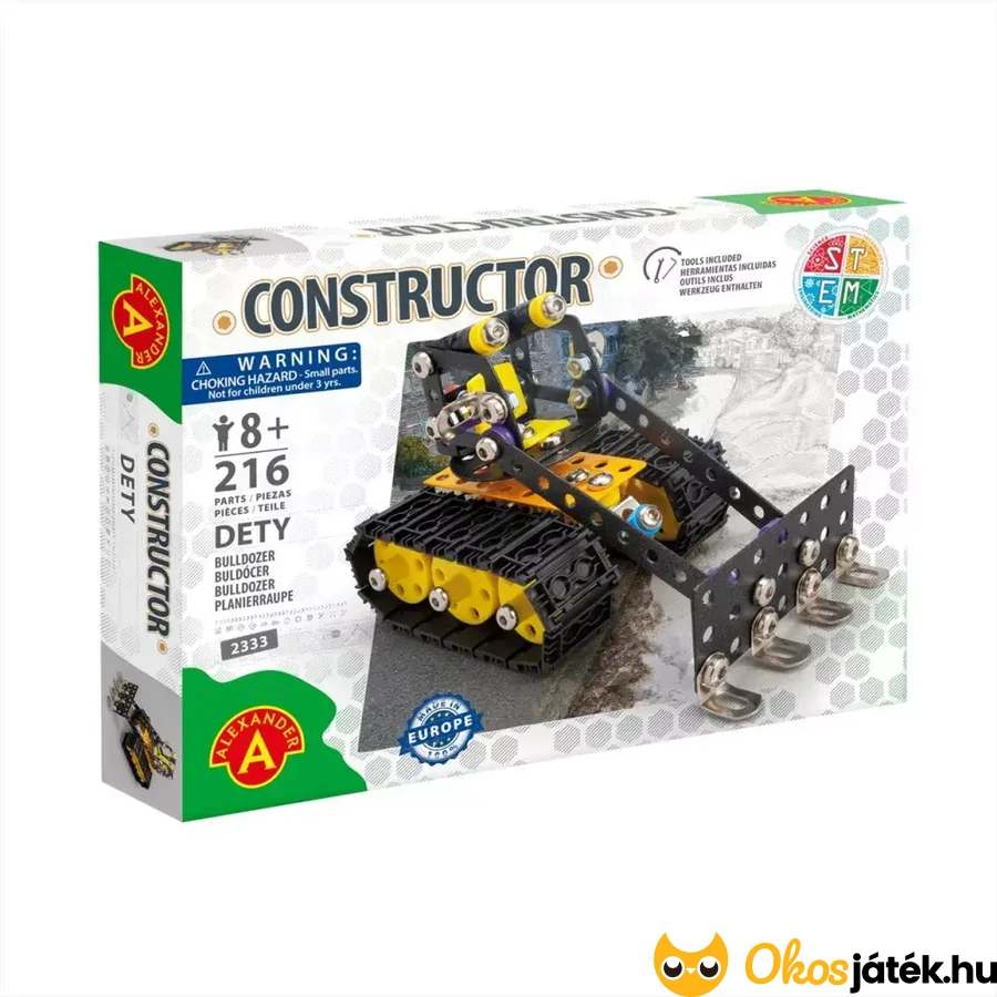 Fémből készült építőjáték nagyobbaknak, 8 éves kortól, műanyag elemekkel kombinálva, melyből egy részletgazdag buldózer építhető össze. A szettből akár saját építmények is létrehozhatók.